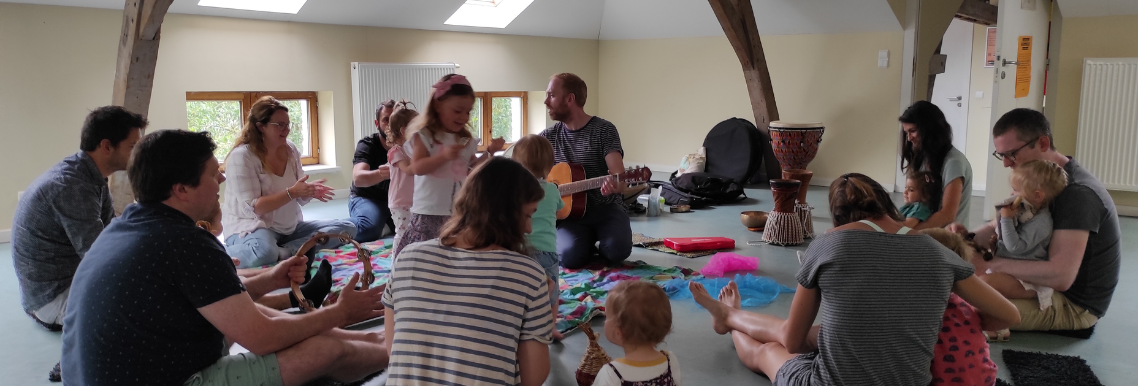 Petites percussions et djembés, guitare, hanpan, des chants et de la vienveillance. Durant 1h, vous aure l'occasion d'expérimenter, de jouer, de chanter, de danser avec votre enfant. Aucun prérequis n'est nécessaire.